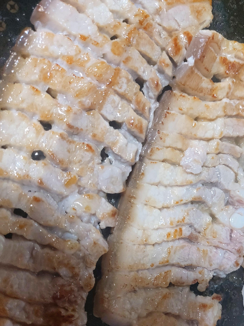 야무지게 굽지 않고 앞 뒤 노릇하게 구운 후