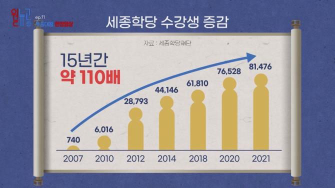 "한국어를 가르치는 전 세계 대학의 수는 1991년 약 150곳에서 현재 1,400곳 이상으로 증가했습니다."