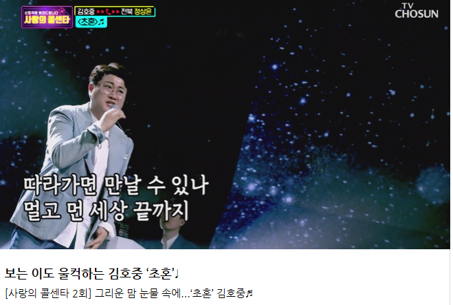 김호중 씨 역시 어릴 때의 그 부족함을 좋아하는 노래를 친구 삼아 그렇게 위로받았을 것입니다.