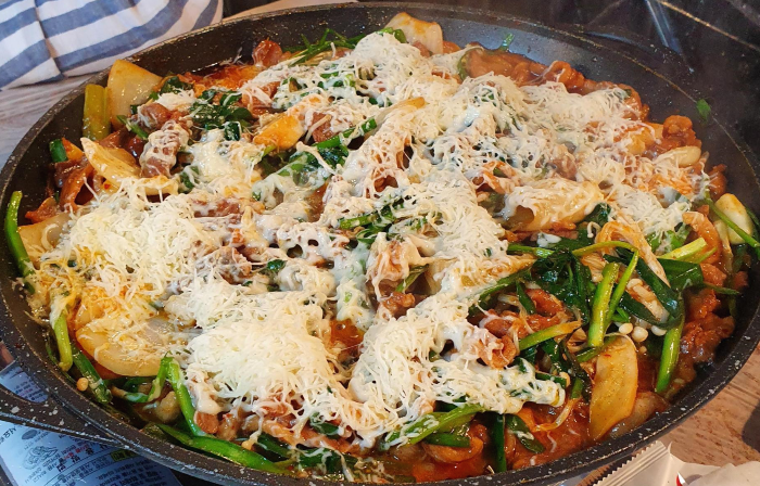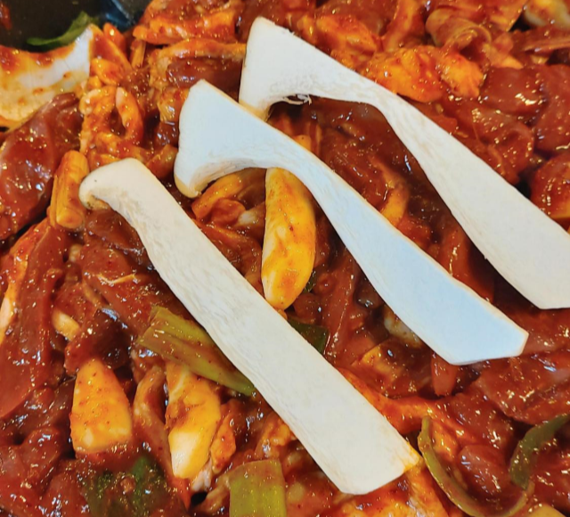 밖에 비가 오고 있어서 실내에도 동굴 위쪽을 덮는 시설을 했음에도 벽면은 그냥 빗물이 타고 내려와 그 조차도 운치가 있었어요. 왜정시절에 왜놈(ㅋ)들이 파놓고 간 비상 방공호를 후대 후손들이 이렇게 사용하고 돈벌고 그런다고 들었어요. 즈이 남편은 외국에서 손님이 오고 남해쪽을 오게 되면 꼭 이 집에서 식사를 한대요. 좀 특이하고 실내가 서늘한것이 공기가 완전 바깥하고 달라요. 그리고 오리주물럭 불고기가 엄청 맛있었어요. 치즈 한대접 추가비용은 있었지만 치즈가 신의 한수였던 것 같구요. 3명이 (중)자 시키고 음료수 2병, 밥 3공기 볶아서 다시 치즈 추가했는데 5만 4천원 지불했습니다. 배도 부르고 뿌듯하고 포만감 가득.....