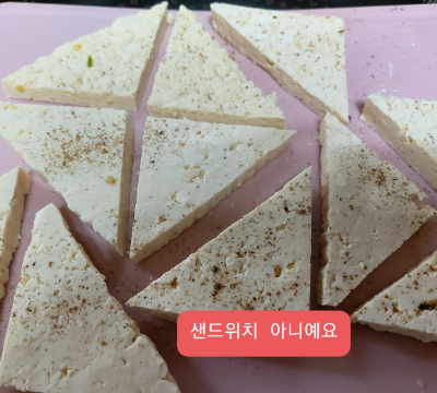 두부를 삼각으로 도톰하게 잘라 소금 약간하고 후추 뿌려두었다가 간수 빼고 계란물을 입혀서 노릇노릇하게 지졌어요. 추석이라 큰 맘 먹고 시장에서 국산 콩으로 만든 100% 국산 두부를 샀어요. 가격이 한 모에 3,4천원이나 하니까 선뜻 된장찌개 등에 넣을 두부로는 사게 되질 않아요. 싼 두부는 퍽퍽하고 단단한데 국산콩 두부는 확실히 그냥 먹어도 맛이 있더라구요.