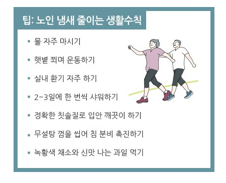 노인 냄새를 줄이거나 없애는 노력을 합시다.