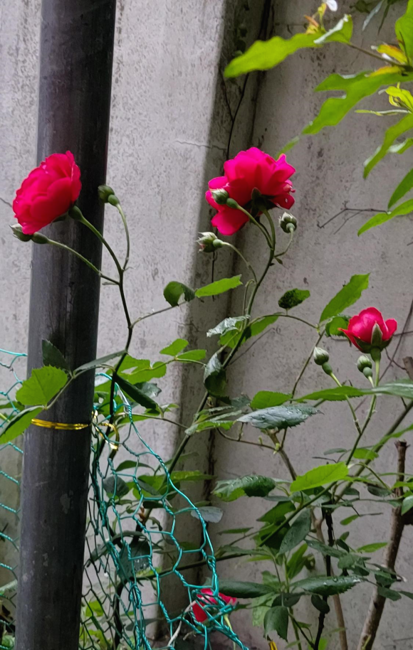 작년 초겨울에 인터넷으로 장미농원을 찾아서 사계 장미 한 그루, 덩쿨장미 한 그루를 구매했습니다. 각각 6천원씩 주고 배송비 별도요. 그런데 사계장미는 아래와 같이 물에 씻은듯이 깨끗하게 뿌리가 씻겨져 왔어요. 덩쿨 장미는 흙과 함께 비닐에 싸여서 왔구요. 겨울이 시작되는지라 장미도 노지월동이 되고 한 겨울에도 남쪽 지방인 우리 동네서는 담벼락에 장미 한 두송이는 볼 수 있으니까 덩쿨장미는 화단에 심고 사계장미는 긴가민가 싶어 큰 화분에 심어 베란다에서 겨울을 났습니다. 결과는 마당에 심은 덩쿨장미도 지난 여름에 맨 아래 사진처럼 빨강꽃으로 성공했고 사계장미도 분홍색꽃이 너무 예쁘게 폈어요..