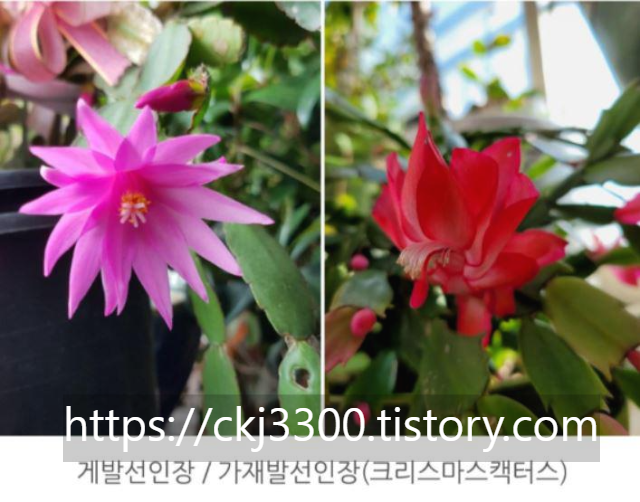 게발선인장은 3~4월 경에 꽃이 핀다고 부활절 선인장이라 부르고 가재발 선인장은 12~ 1월경 겨울 성탄절 즈음에 핀다고 크리스마스 선인장이라고 부르기도 한답니다. 혹자는 추수감사절에 피는 추수감사절 선인장도 있다고 하니까요. 명절 꽃인가요? ㅎ