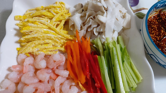 사실은 데친 새우가 너무 많아 새송이하고 버무리려고 안하던 계란지단까지 만들었어요. 이걸로 김밥 만들어도 되겠네요.