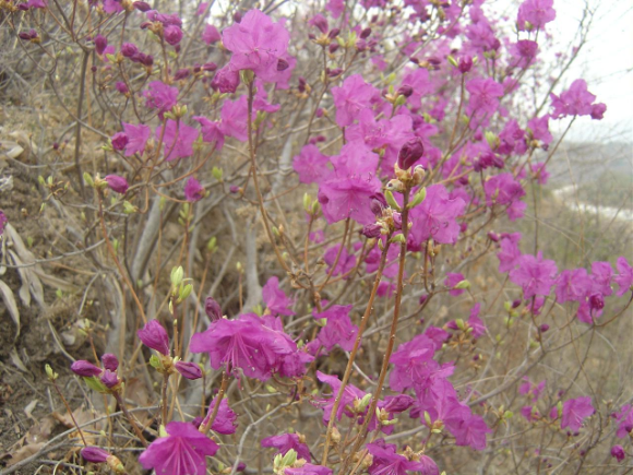 앙상한 가지에 꽃부터 피면 진달래, 잎과 꽃이 거의 동시에 피면 철쭉과 영산홍이라고 합니다.