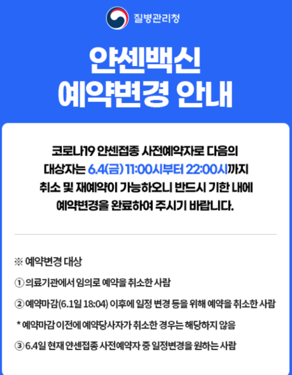 ## 접종 2일 전까지 온라인(http://ncvr.kdca.go.kr) 혹은 콜센터(1339, 120, 667-3831~40)를 통해 취소 가능하고 접종 전일 또는 당일, 건강상태가 좋지 않은 경우 예약된 접종 기관으로 연락하여 일정을 변경하고 건강상태가 좋은 날 안전하게 접종