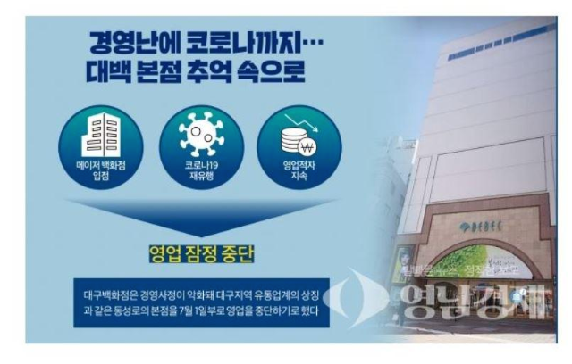 앞서 지난 3월 대구백화점은, 경영 악화로 본점 영업을 잠정 중단하기로 결정했다.